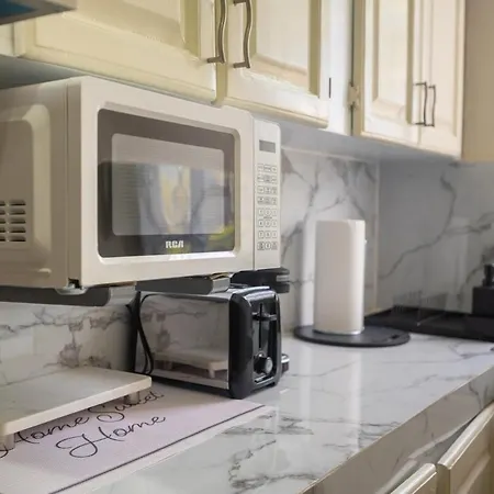 Здесь вы найдете оснащённую всем необходимым кухню. В ней доступна микроволновая печь и холодильник.